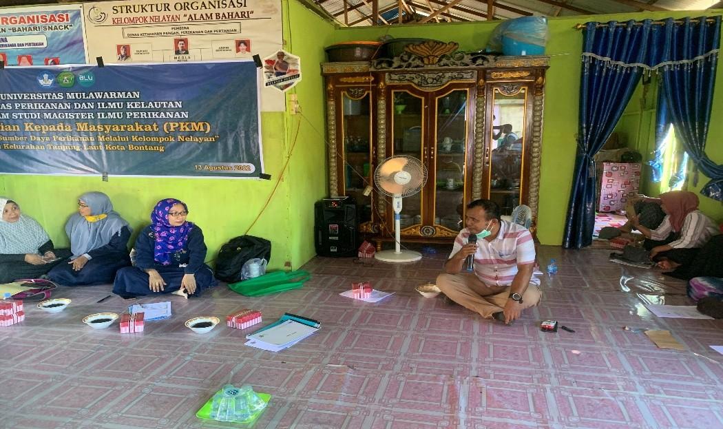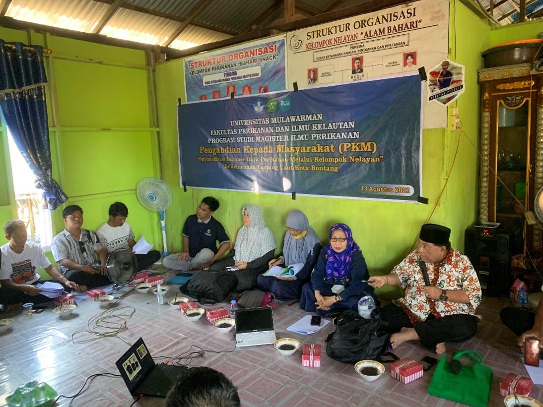 Program Studi Magister Ilmu Perikanan disingkat Prodi MIP lakukan pengabdian Masyarakat di Kelurahan Tanjung Laut Kota Bontang pada kelompok nelayan, sebagai implementasi kegiatan tridarma perguruan tinggi dalam bentuk diskusi sharing materi dari narasumber tim pengajar Program Studi Magister Ilmu Perikanan yaitu Prof.Ir.H.Helminuddin,MM dan ibu Dr.Hj.Fitriyana,S.Pi.,M.Si sekaligus sebagai Koordinator Prodi MIP, bersama mahasiswa Prodi MIP Angkatan ke 2 Mahasiswa an.Fadly dengan Nim. 1906018003 dan mahasiswa Angkatan ke 3 mahasiswa an. Muh.Iqbal Nim. 2006018005 dan Ardiansyah dengan Nim. 2006018003, ikut membersamai dalam kegiatan pengabdian Masyarakat bersama kelompok nelayan, kegiatan dipandu oleh Etik Sulistiyawati,S.P..M.Si.Ph.D sebagai Moderator kegiatan PKM Prodi MIP.