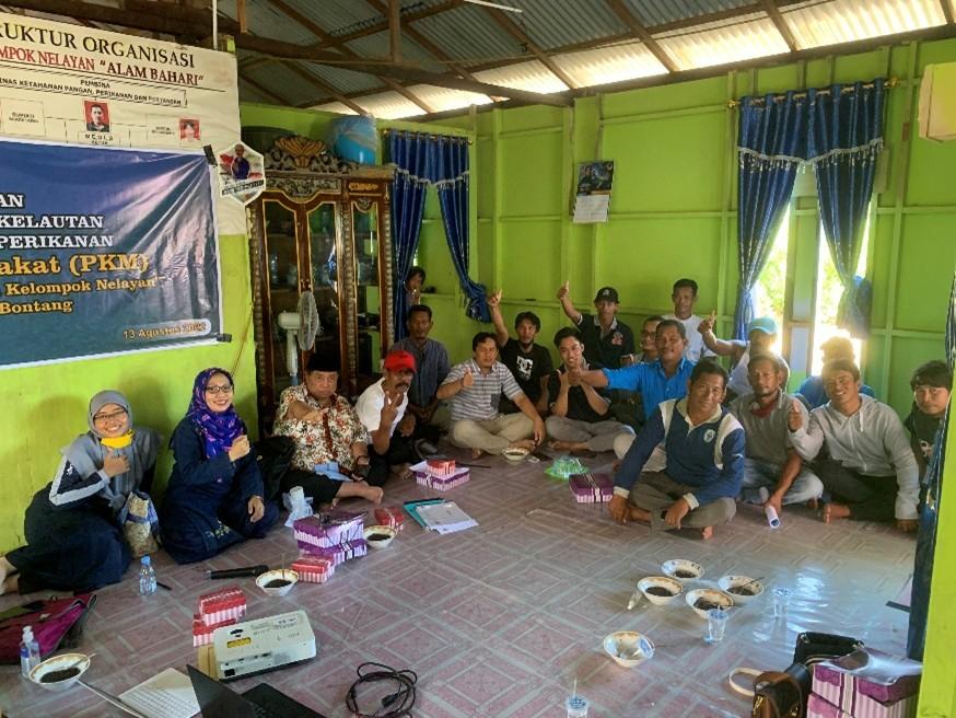 nelayan mendengarkan dan sharing pengalaman sebagai nelayan dilapangan dalam