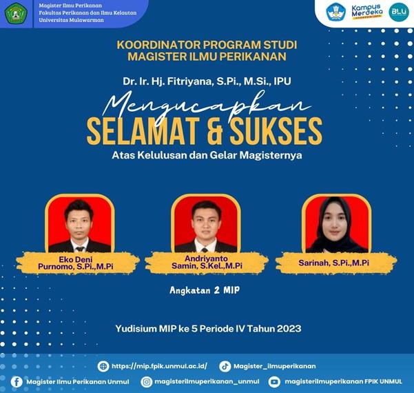 Semoga gelar yang diraih dapat menjadi awal kesuksesan yang lebih besar dan memberikan kontribusi nyata dalam bidang perikanan dan kelautan. Fakultas Perikanan dan Ilmu Kelautan Universitas Mulawarman berharap para lulusan mampu mengaplikasikan ilmu yang didapat untuk kemajuan bangsa dan negara. Universitas Mulawarman bangga atas pencapaian para lulusan dan berharap mereka dapat terus membawa nama baik almamater di berbagai kesempatan.