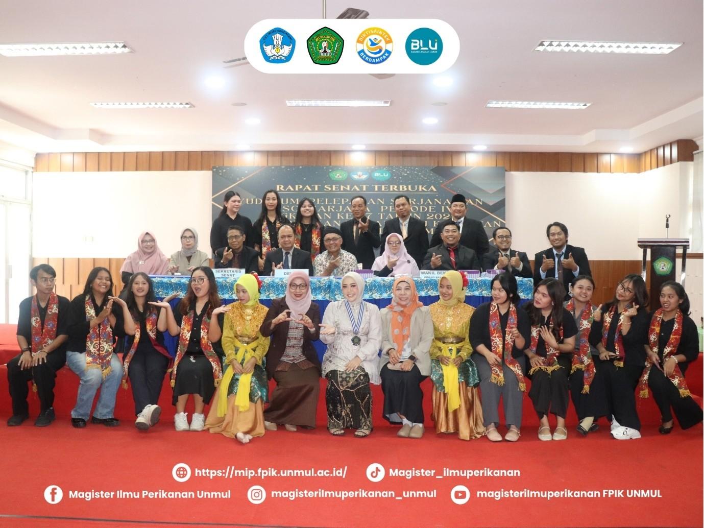 Dalam sambutannya, Koordinator Program Studi Magister Ilmu Perikanan Dr. Ir. Hj. Fitriyana, S.Pi., M.Si., IPU menyampaikan rasa syukur dan kebahagiaan atas pencapaian lulusan. Menurut beliau, kelulusan ini bukan hanya sekedar simbol keberhasilan, tetapi juga menjadi titik awal perjalanan intelektual yang membawa tanggung jawab untuk mengaplikasikan ilmu demi kemajuan masyarakat.